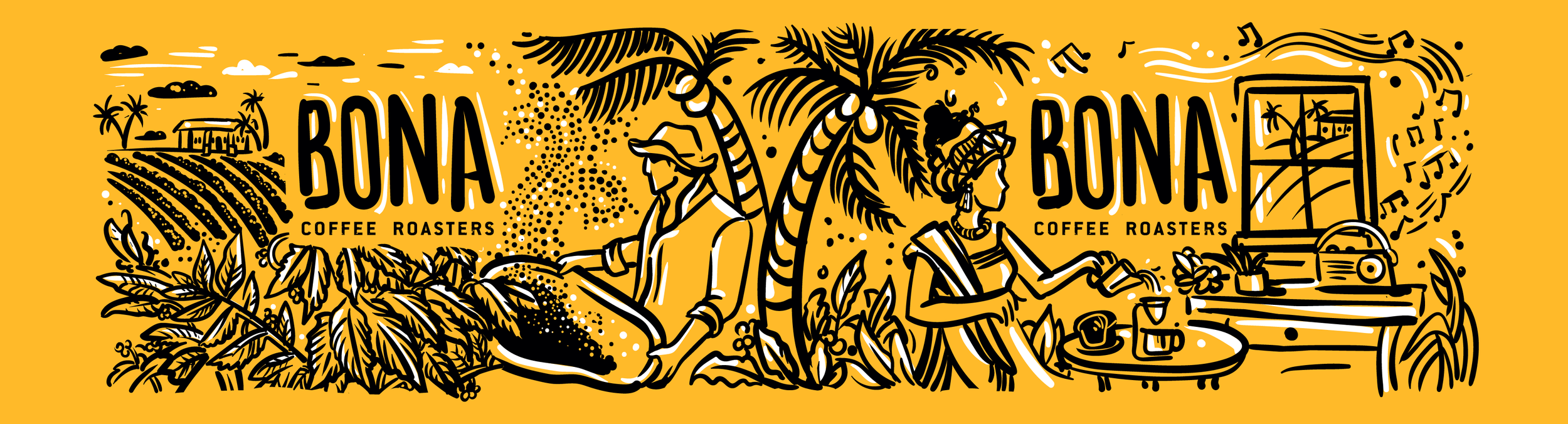 BONA Coffee Roasters is a specialty roastery based in Boulder, Colorado with deep family origins in Italy and Brazil, hand-crafting small-batch roasts sourced directly from farmers around the world. The name itself says it all — bona meaning "good fortune" — a brand with warmth, heritage, and a global perspective baked into its DNA. I built their visual identity from scratch: designing the logo, developing the full brand system, creating custom illustrations, and producing retail marketing materials that bring that spirit to life at every touchpoint.
